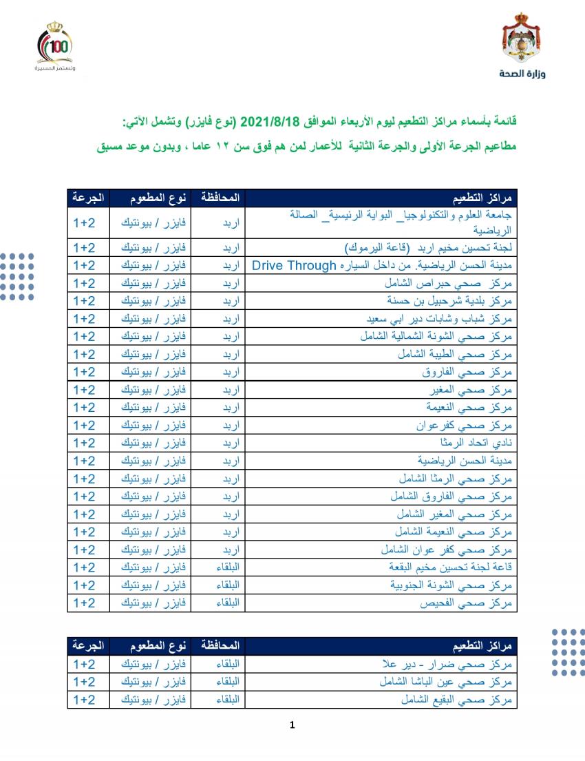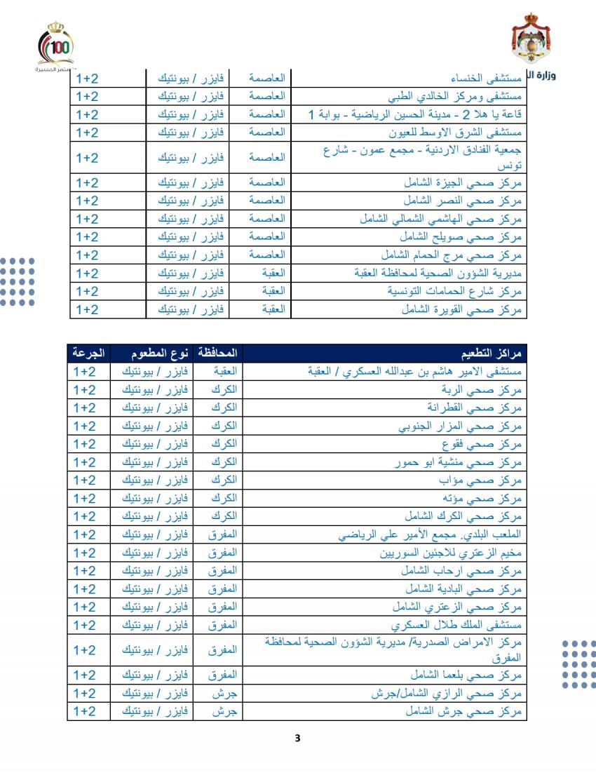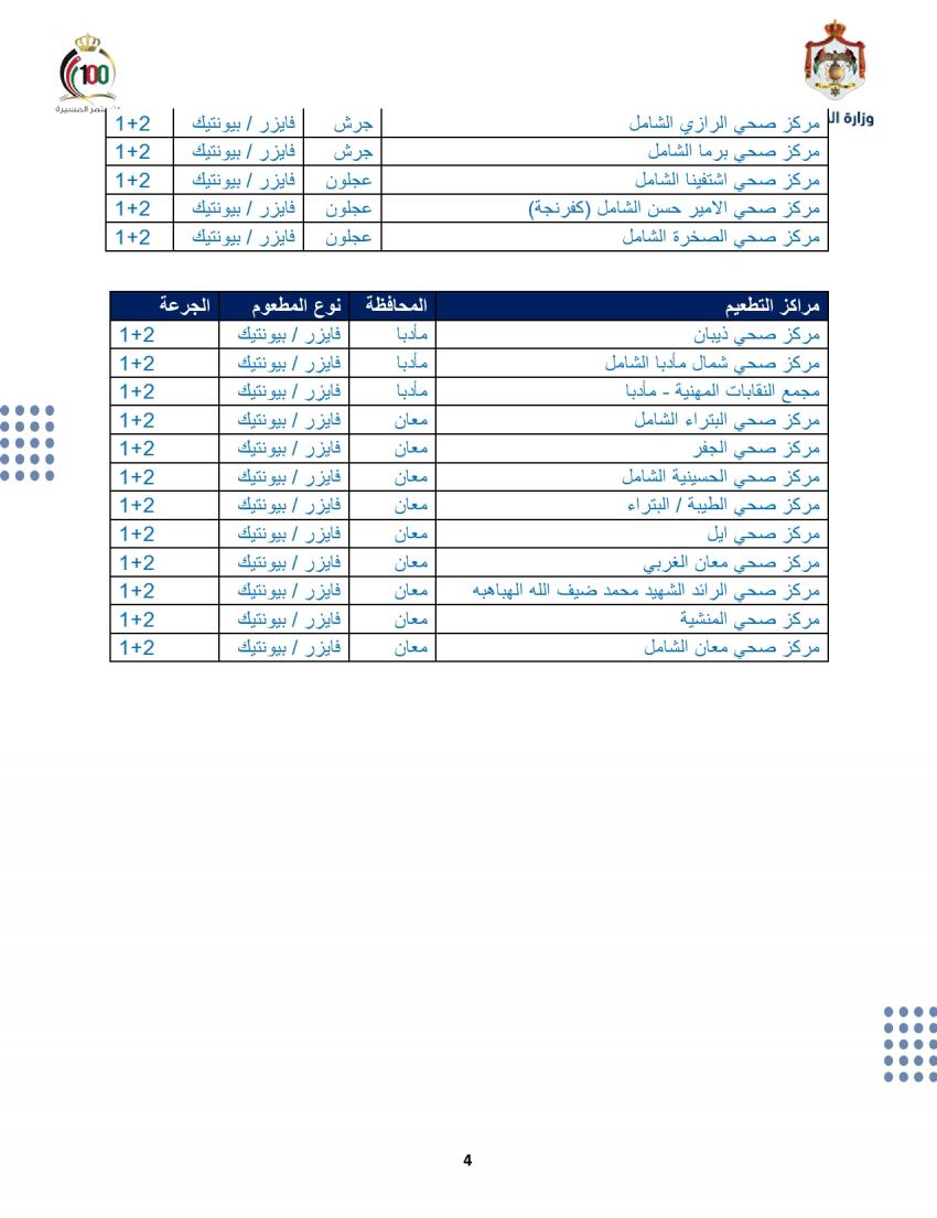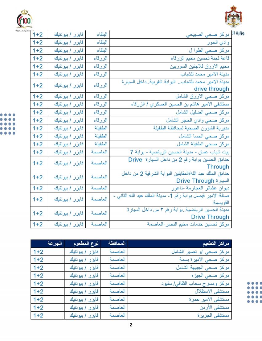 وخصصت المراكز التالية للجرعة الثانية من لقاح فايزر: