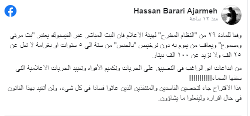 أحداث اليوم - أثار قرار هيئة الإعلام المرئي والمسموع، بتحويل ثلاثة أنظمة إلى ديوان التشريع والرأي ردود فعل غاضبة على مواقع التواصل الاجتماعي في الأردن.