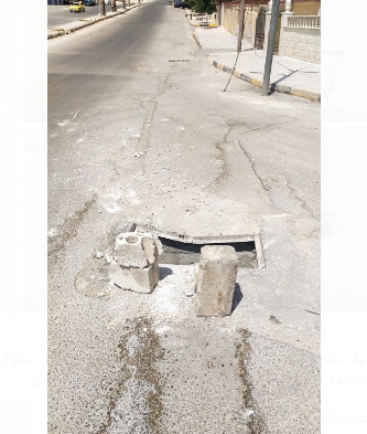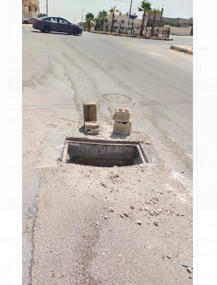 وقال مواطنون انه تم سرقة غطء المنهل وتم تقديم شكوى لمكتب البلدية من وقته.