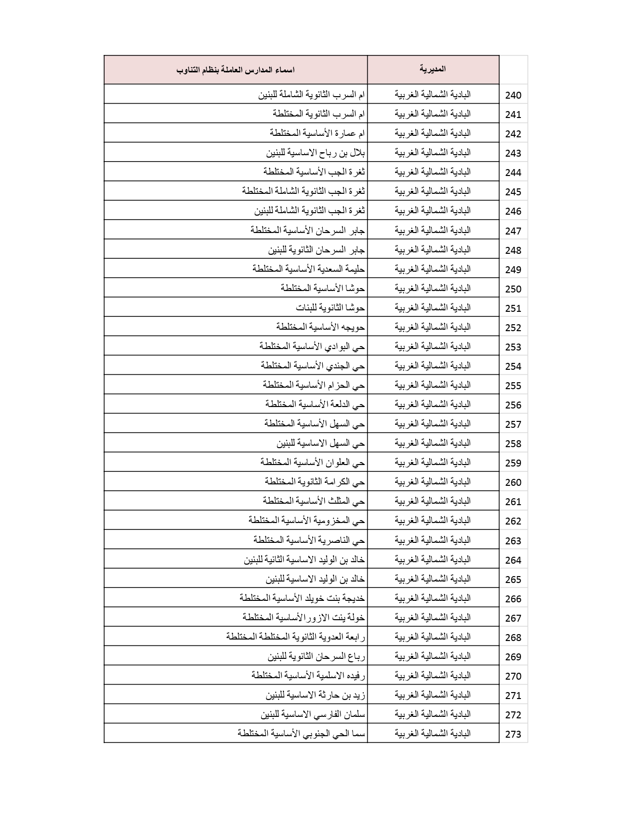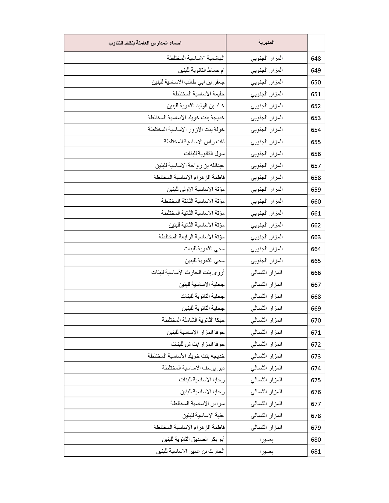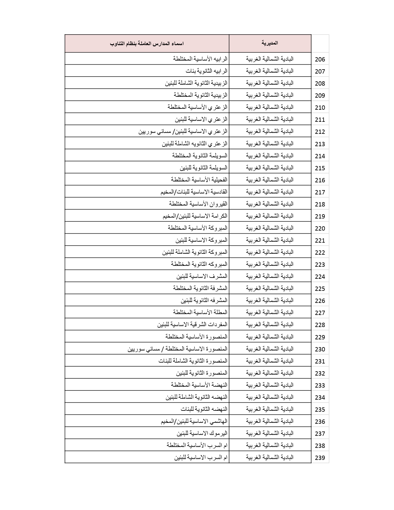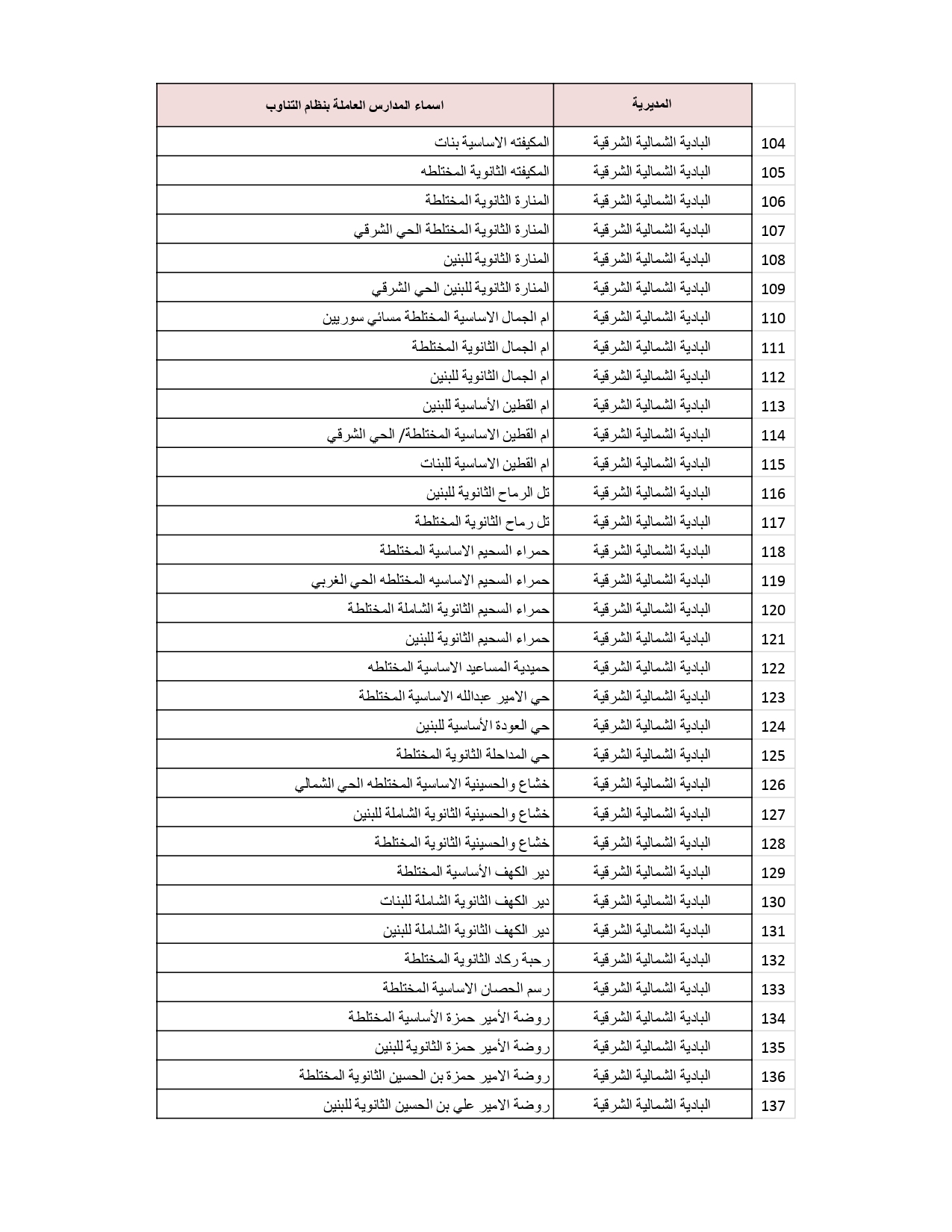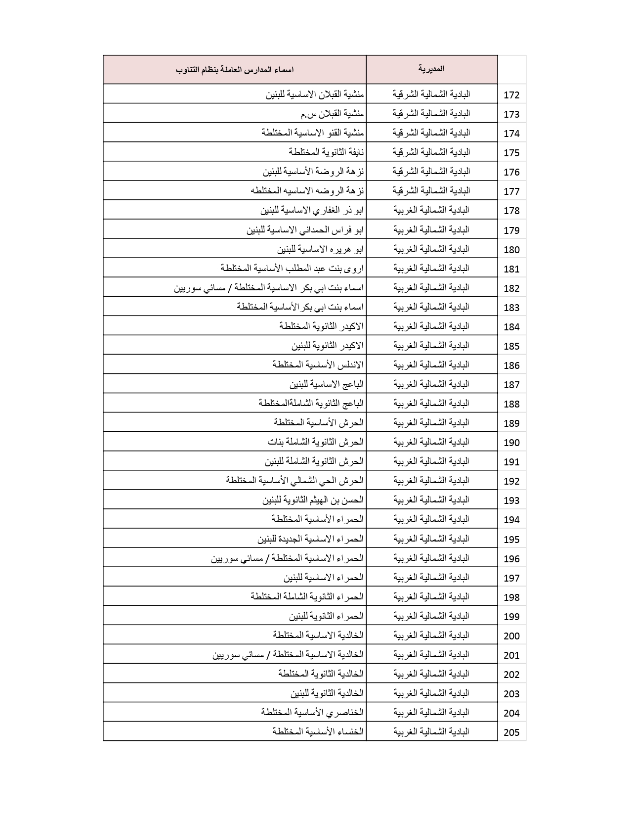 المدارس التي سيكون فيها دوام الطَّلبة بالتناوب -أسماء