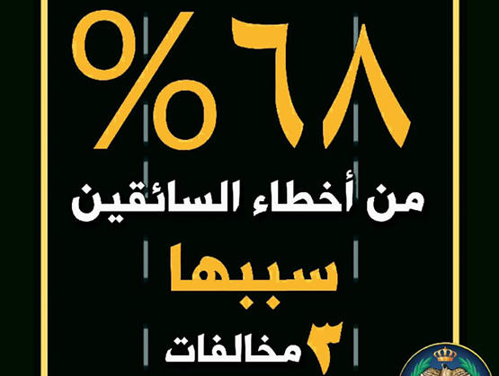 وبينت الادارة في ادراج له عبر فيسبوك أنه بلغ نسبة الحوادث نتيجة مخالفة عدم اخذ الاحتياطات الازمة 42،2%، و24،2% لمخالفة المسرب الخاطئ فيما بلغت نسبة الحوادث نتيجة التعامل مع المنعطفات بشكل خاطئ 2،8%.