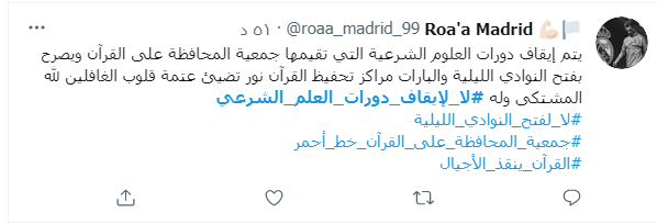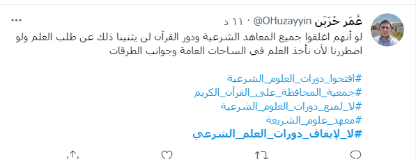 وطالبوا الحكومة بالتراجع عن القرار فوراً والسماح لمراكز تحفيظ القران بالعمل بطاقة كاملة كما كانت من قبل.