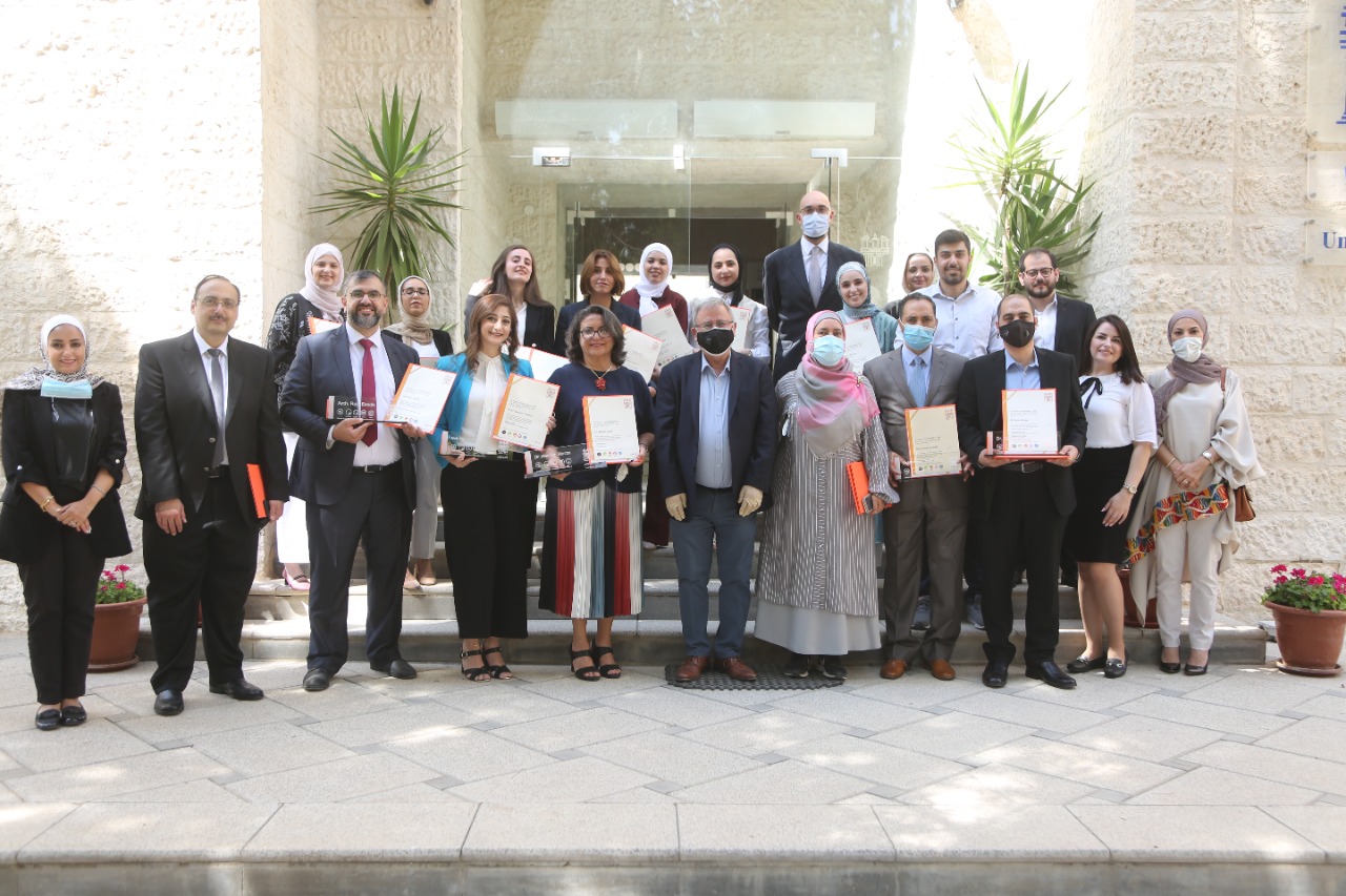وكرم المولا من قسم التصميم الجرافيكي الدكتور محمد خيري والدكتورة نهى البسيوني والطلبة سارة أبو غليون وزيدون بسطامي ولانا سفيان وعمر شيلو لفوزهم في مسابقة typo day award، والطالبة سارة البزلميط لفوزها بجائزة موهبتي في بيتي.