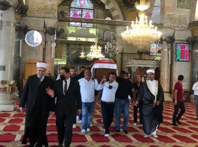 وأدى المئات صلاة الجنازة على روح الشهيد في المسجد الأقصى.