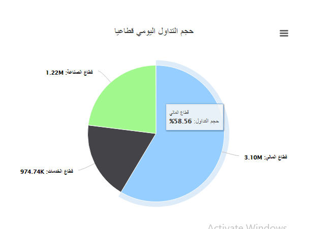 ووضحت بيانات التداول، ارتفعاً على مؤشرات القطاع المالي بنسبة 58.6%، مقارنة مع تداولات امس الاحد التي وصلت الى 39.32.