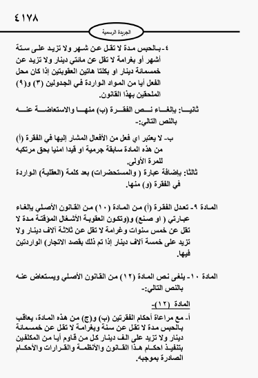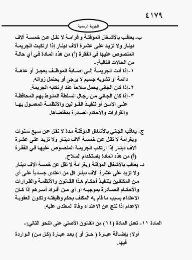 ويبدأ العمل بالقانون بعد ثلاثين يوما من صدوره في الجريدة الرسمية.