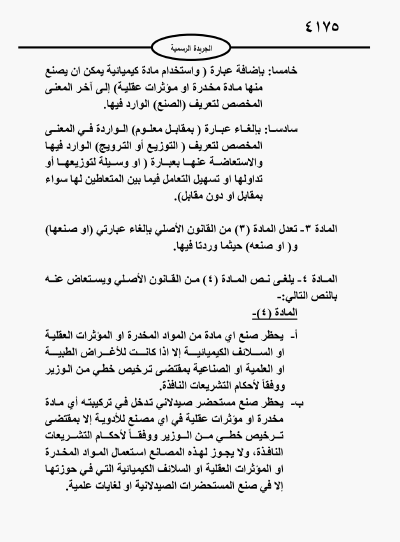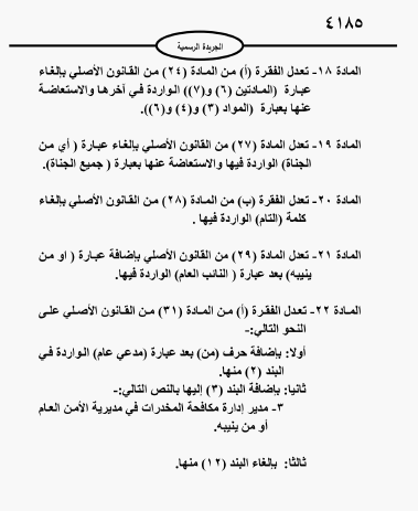 صدور قانون المخدرات الذي يعفي المتعاطي لأول مرة