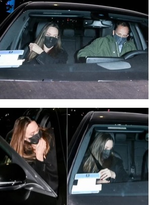 شوهدت النجمة أنجلينا جولي من جديد رفقة زوجها السابق، جوني لي ميلر، الاثنين الماضي، والتقطت صور لهما بعد تناولهما وجبة عشاء بأحد المطاعم في بيفرلي هيلز بكاليفورنيا. وظهرت جولي، التي ما زالت تخوض معركة الانفصال مع طليقها براد بيت، بمعطف أسود وحذاء بكعب مدبب ووضعت على وجهها كمامة سوداء.