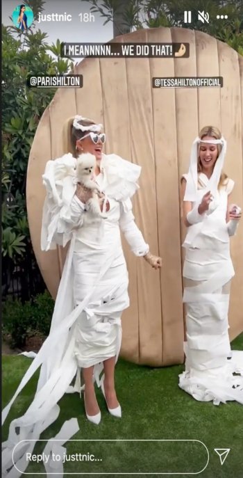 وتحوَّلت النجمة و شقيقة زوجها تيسا هيلتون الى عارضتين، وانقسم أصدقاء باريس إلى مجموعتين وتسابقوا لتصميم فساتين زفاف من ورق التواليت لباريس ولتيسا في غضون خمس دقائق. انتهى الأمر بارتداء باريس فستان زفاف أنيق من الثمانينيات من ورق المرحاض بينما صمم فستان طويل لتيسا يصل الى الارض.