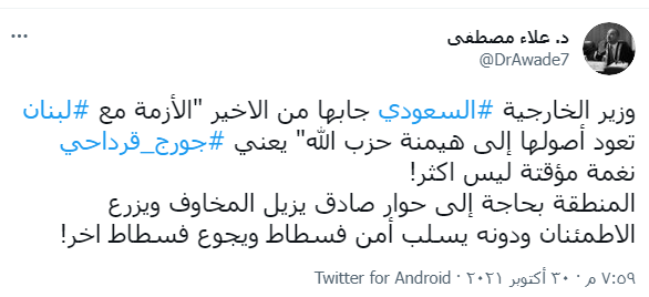 وتنوعت مواقف النشطاء بين من ايد قرداحي وقال ان كلامه لا يوجد فيه اساءة، وبين من اعتبره مخطئ وادخل لبنان في ازمة عميقة.