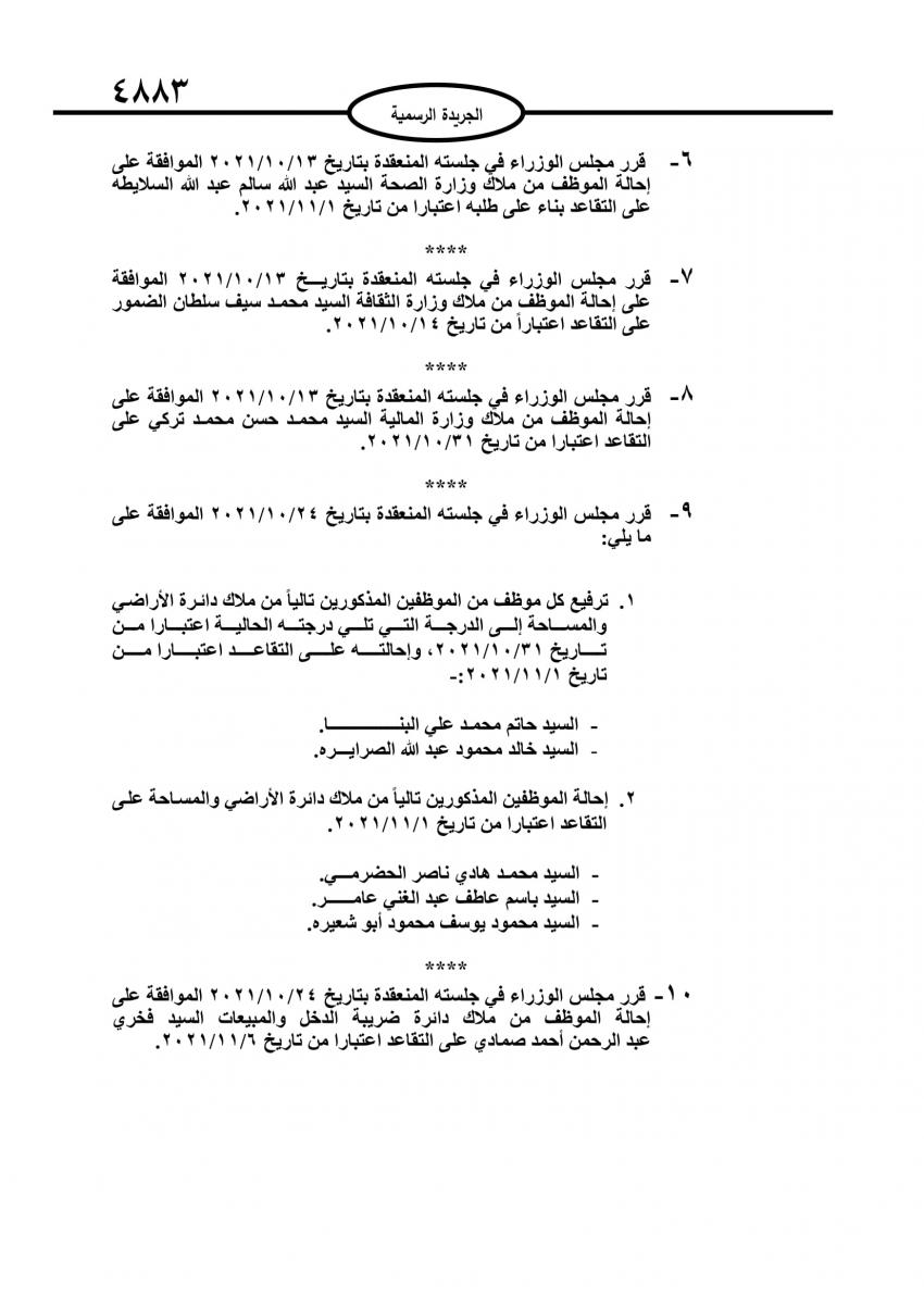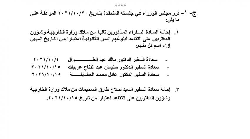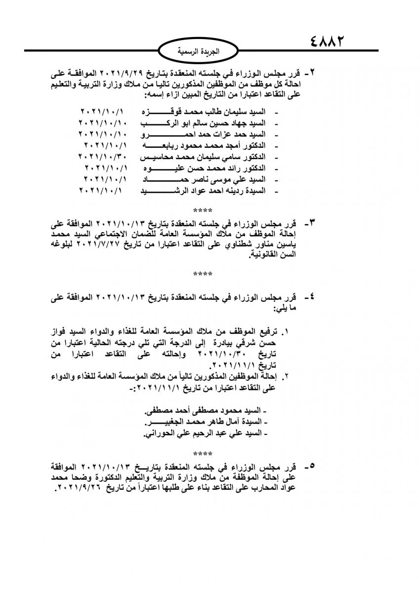 أحداث اليوم - صدر في عدد الجريدة الرسمية اليوم الاثنين قرارات مجلس الوزراء باحالة موظفين حكوميين الى التقاعد.وتاليا الاسماء: