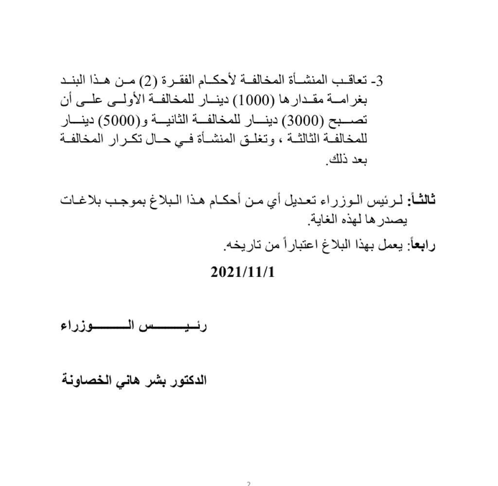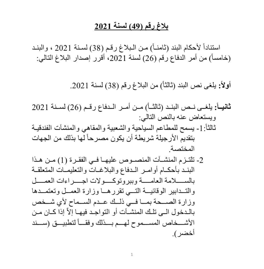 أحداث اليوم - أصدرت الحكومة البلاغ رقم (49) لسنة 2021م الذي ينظِّم عمل المطاعم السياحيَّة والشعبيَّة والمقاهي والمنشآت الفندقيَّة المصرَّح لها بتقديم الأرجيلة.وجاء على النحو التالي: