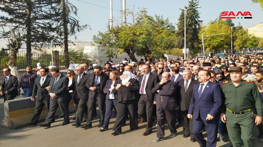 وذكرت مصادر إعلامية سورية أن مراسم التشييع الرسمية حضرها وزير رئاسة الجمهورية منصور عزام ممثلا عن الرئيس بشار الأسد، إضافة إلى عدد من الوزراء من بينهم وزيرا الإعلام بطرس الحلاق، والثقافة لبانة مشوح، إضافة إلى عدد من أعضاء مجلس الشعب وحشد من الفنانين، وممثلين عن النقابات الفنية والمعاهد الموسيقية.