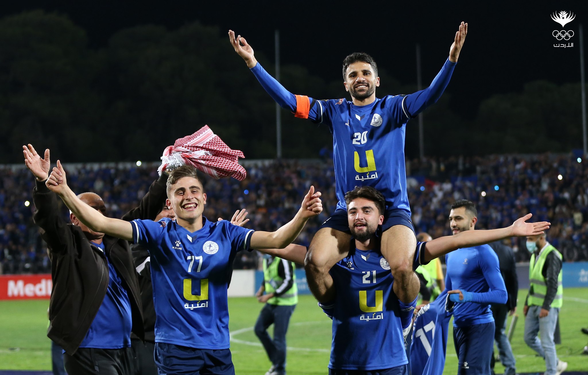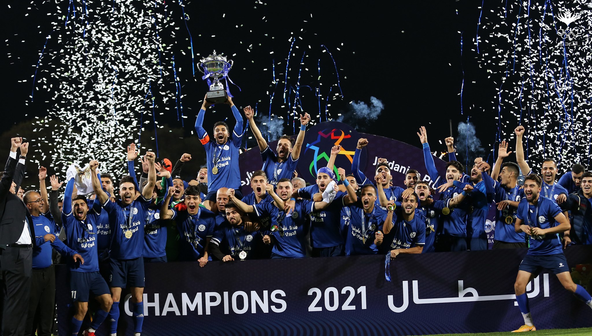 احتفال لاعبي الرمثا بالتتويج بلقب الدوري - صور