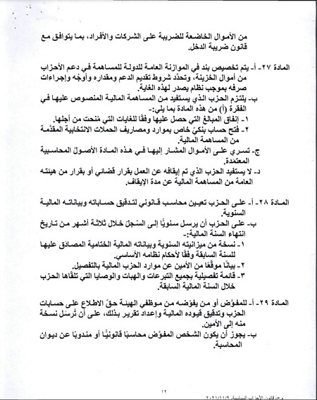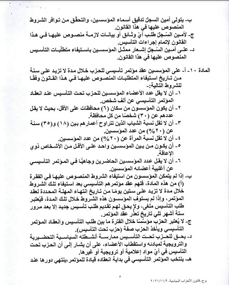 إضافة إلى تمكين الأحزاب السياسية من الوصول إلى تشكيل حكومات حزبية، أو المشاركة فيها وفقا للمادة 35 من الدستور.