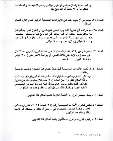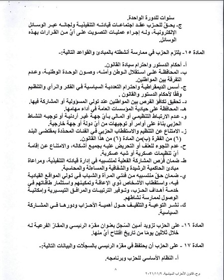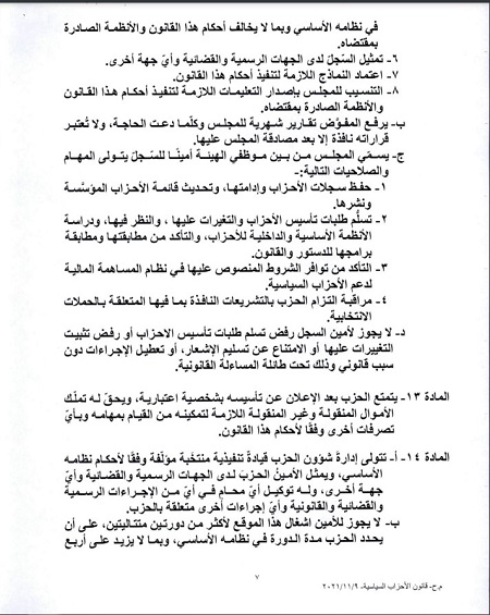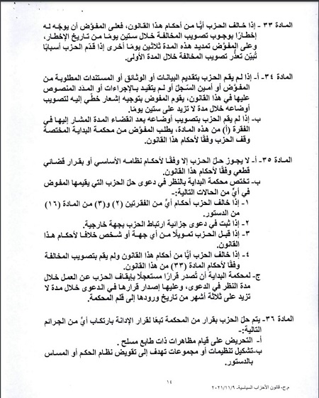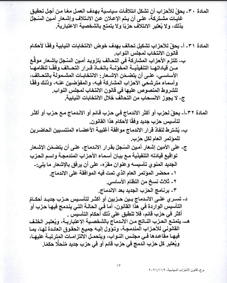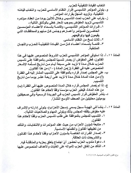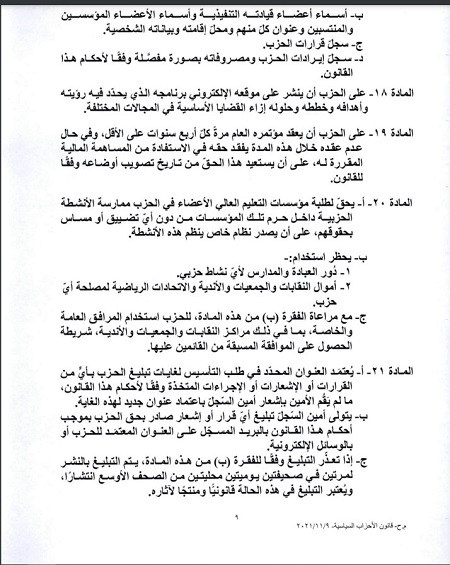 أحداث اليوم - نشر مجلس النواب، الأربعاء، مشروع قانون الأحزاب السياسية لسنة 2021 الذي أُعطي صفة الأولوية والاستعجال، بعد إقراره من قبل مجلس الوزراء الأحد.