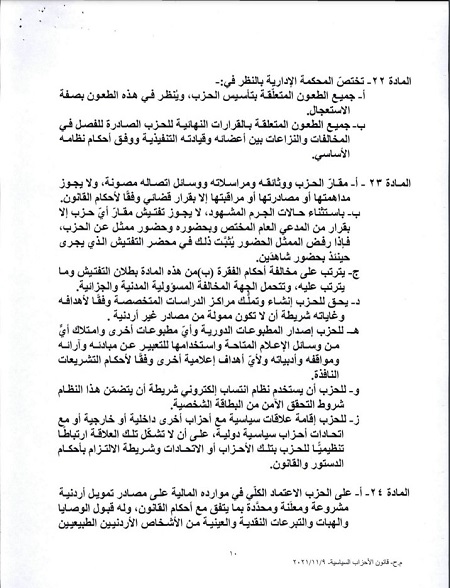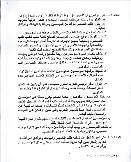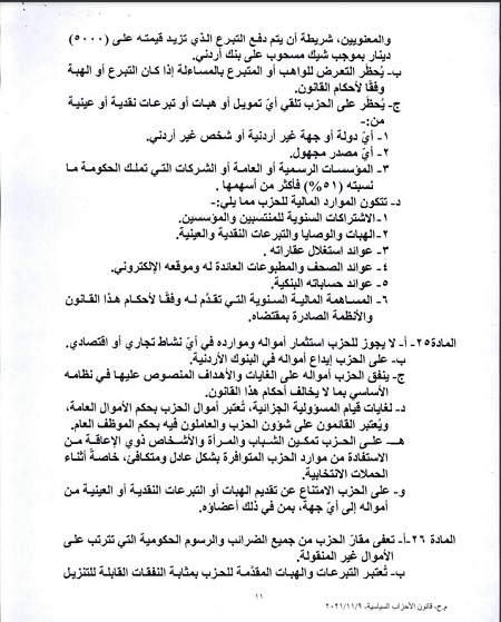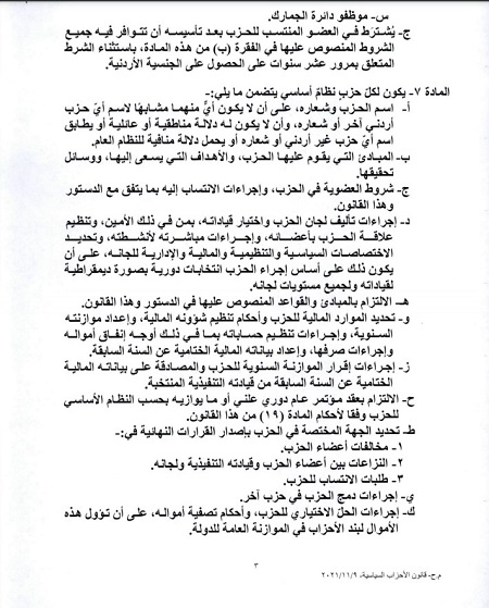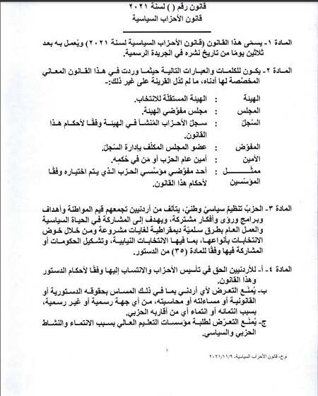 وجاء مشروع تعديل قانون الأحزاب السياسية وفق الأسباب الموجبة، إيمانا بالدور الذي يؤديه الأحزاب في الحياة السياسية للتعبير عن مواقف الأردنيين ومصالحهم.