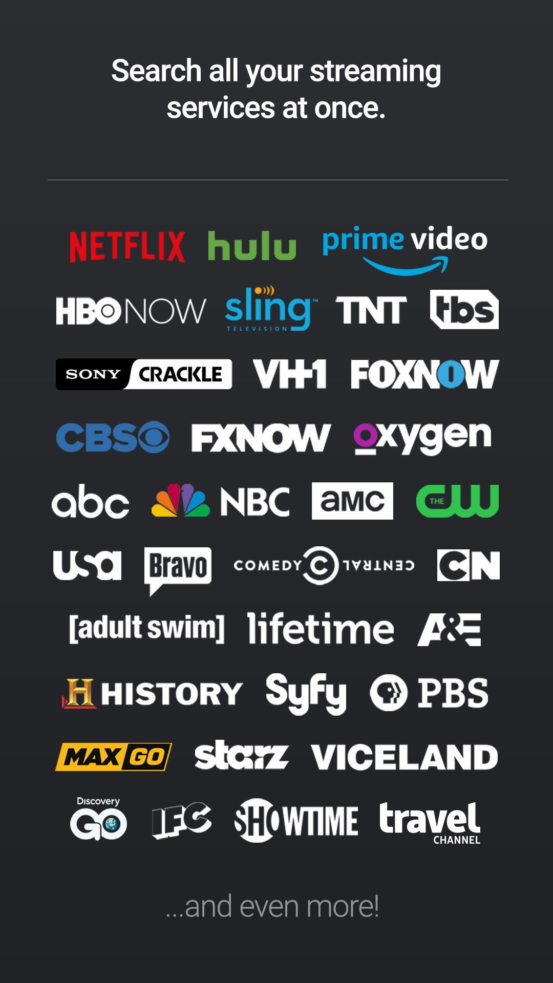 Universal search to easily find where to watch TV Shows or Movies available across more than 100 sources like Netflix, Hulu Plus, Amazon Prime, Xfinity, DirecTV, HBO GO, HBO NOW, Google Play, Crackle, MTV, CBS, Vudu, FOX, CW, PBS, Lifetime, YouTube, A&E, History Channel, MAX GO, Showtime, Cartoon Network, Comedy Central, VH1, ABC, Starz, EPIX and Fandango, all in one app. What are you waiting for? With Yidio, finding what you want to watch has never been easier.
