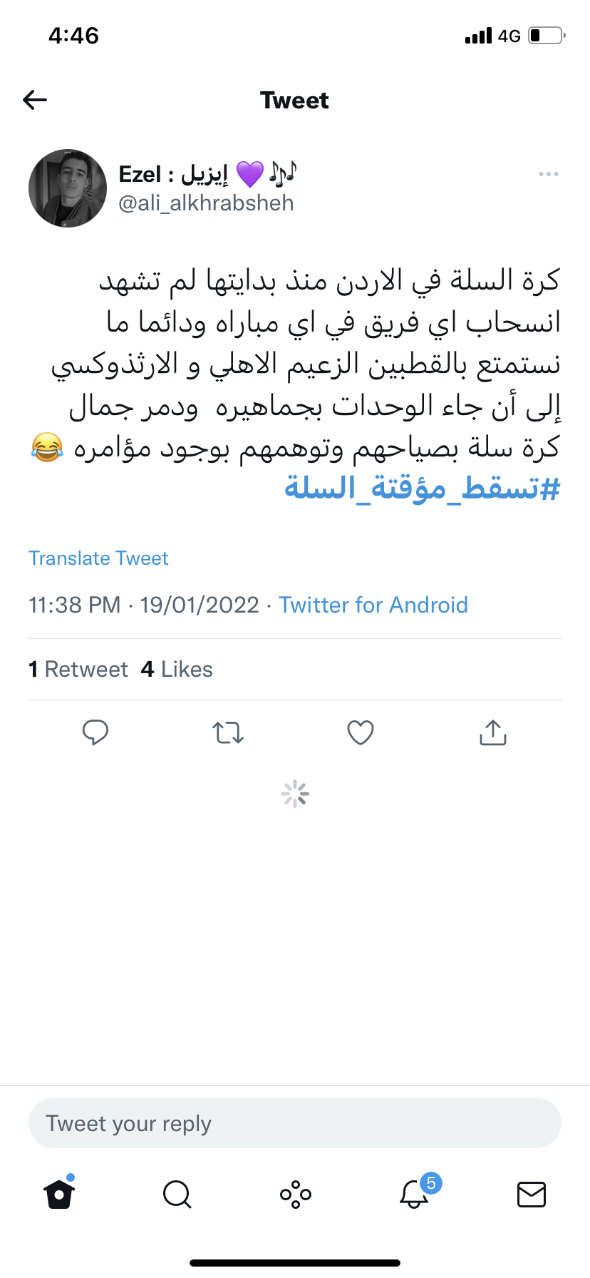 كرة السلة للجميع وليست محصورة بنوادي معينة، نطالب باتحاد عادل مع كافة الأنديه يعمل بشكل احترافي ويقوم على تطوير السلة الأردنية والاهتمام بمنظومتها من بنية تحتية وقوانين وجماهير ولاعبين وحكام#تسقط_مؤقتة_السلة