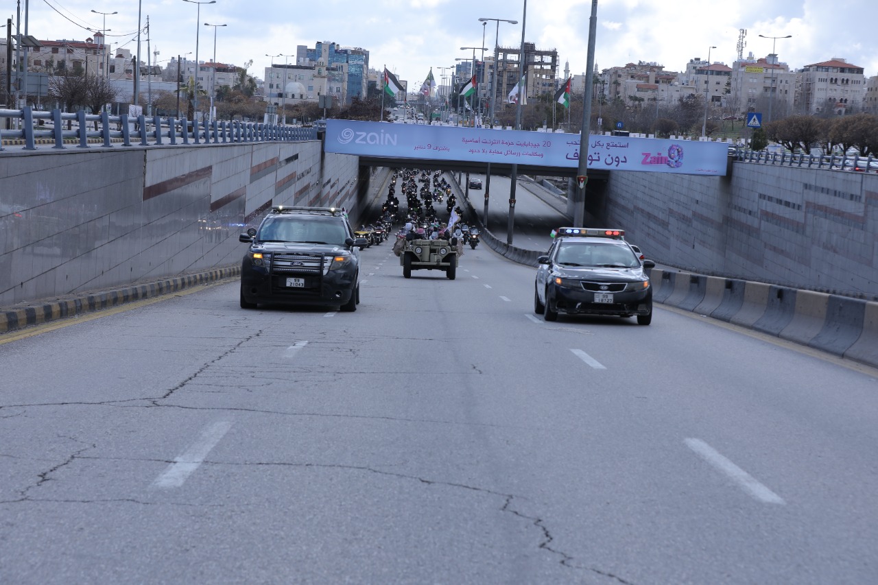 وأقيمت الفعالية بمشاركة سلاح الجو الملكي الأردني، ومتحف السيارات الملكي، ومتحف الدبابات الملكي، ومديرية الأمن العام والمعهد المروري الأردني، ومالكي الدراجات النارية في الأردن، حيث حلّقت إحدى مروحيات سلاح الجو فوق موقع الفعالية ورافقت مسيرة الدراجات النارية، كما اصطفت مجموعة من سيارات متحف السيارات الملكي وآليات من متحف الدبابات الملكي أمام مبنى شركة زين.