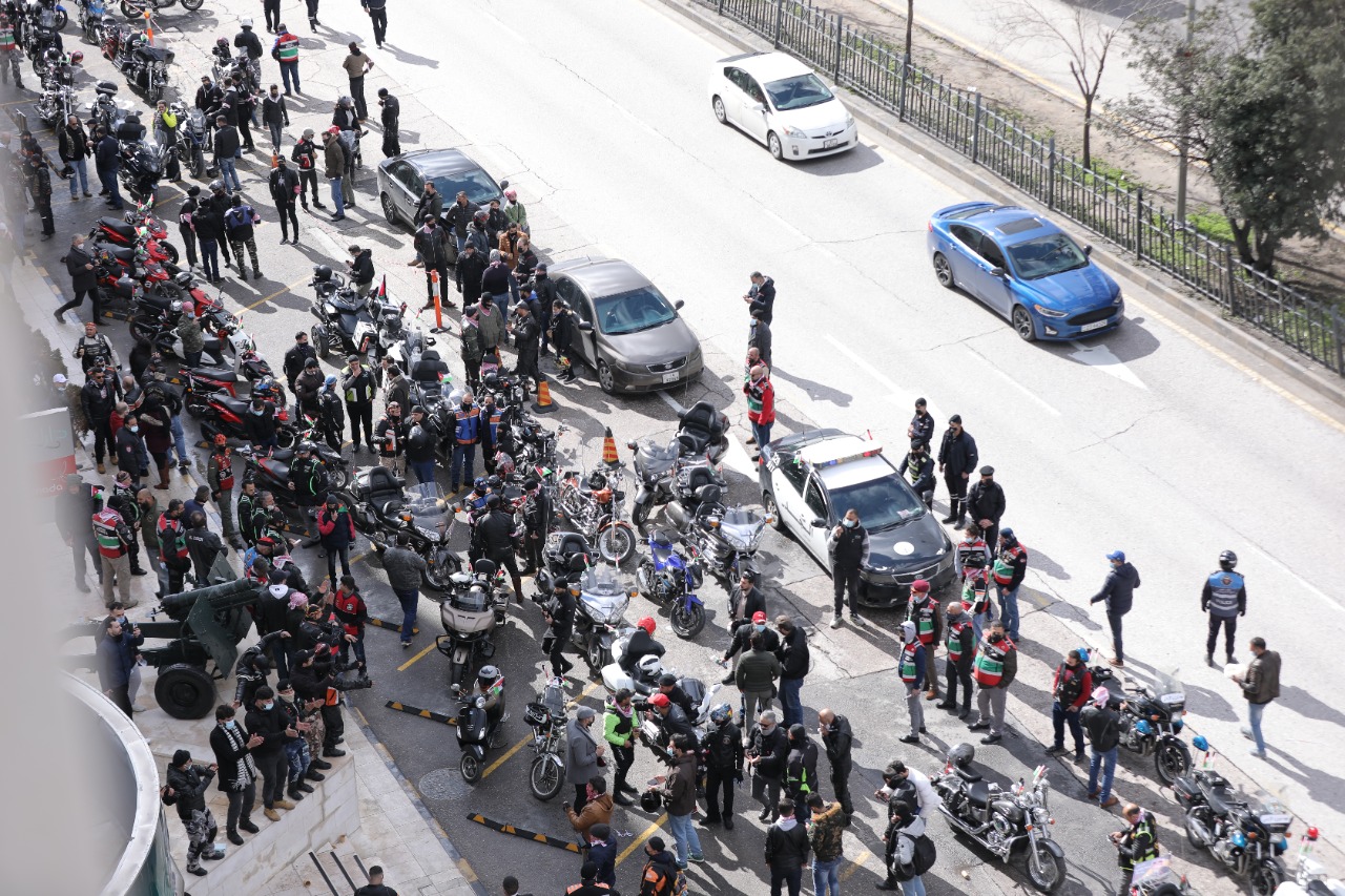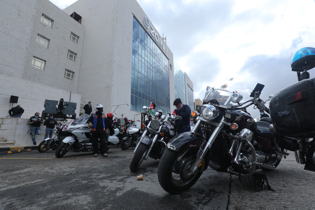 أحداث اليوم - احتفالاً بالعيد الستين لجلالة الملك عبدالله الثاني؛ نظمت شركة زين الأردن صباح اليوم الجمعة فعالية احتفالية أمام مبنى الشركة، حيث انطلقت مسيرة للدراجات النارية من أمام مقر زين وجابت عدداً من شوارع العاصمة عمان، وصولاً إلى قرية الدراجين – طريق المطار.
