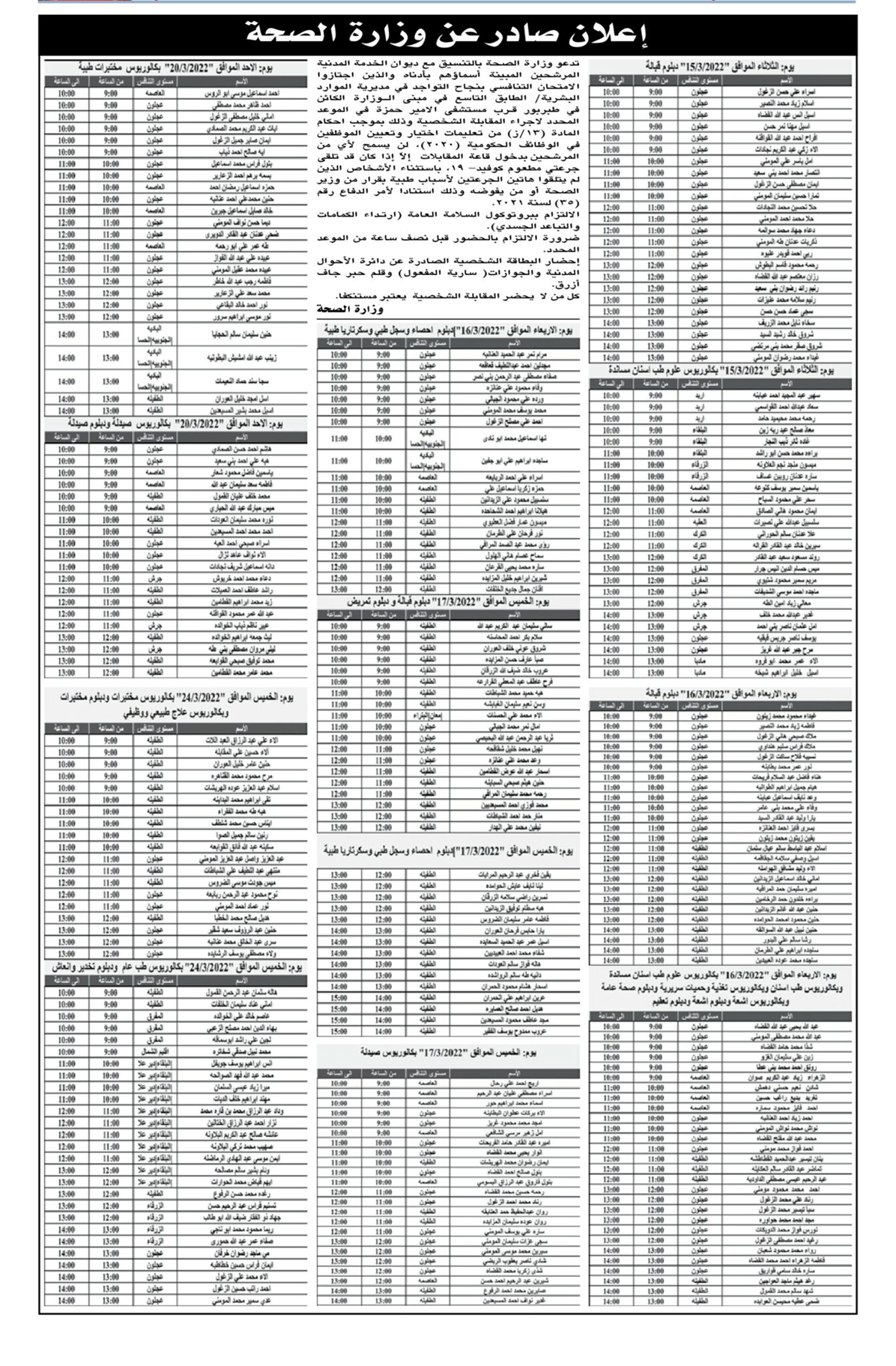 مدعوون لإجراء المقابلات الشخصية في الصحة - أسماء