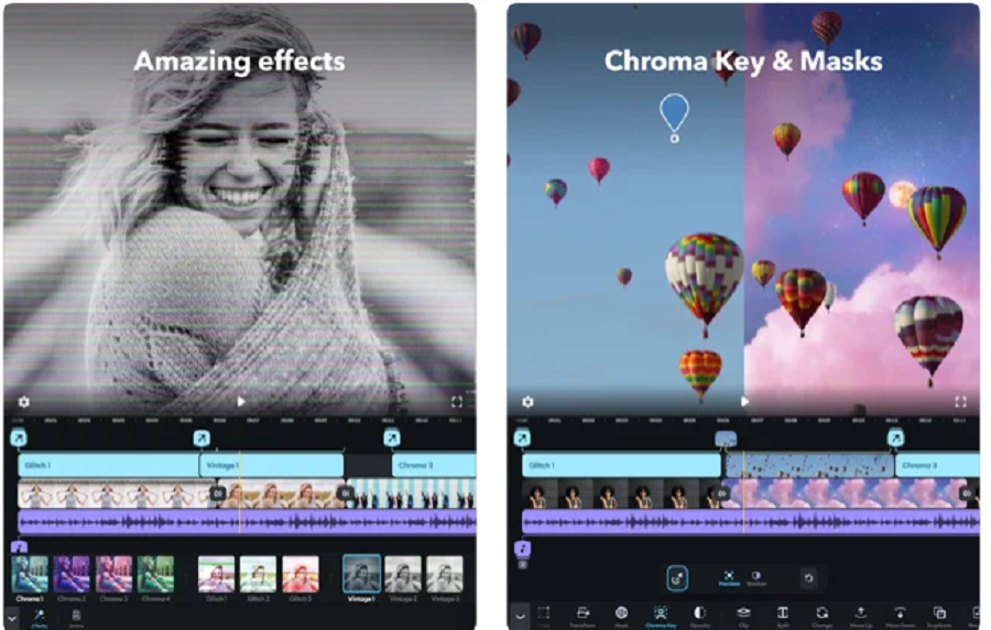 التطبيق يعمل على تحرير وتعديل الفيديوهات و يعمل على دبلجة الصوت و مؤثرات الصورة للفيديوهات الخاصه بالمستخدم من خلال وجود ادوات تعديل على الفيديوهات و الصور و اضافة بعض الموسيقي عليها بجودة عالية في الصوت والصورة وأيضا يمكنك من إنشاء فيديوهات قصيره و التطبيق يمكن المستخدم من مشاركة الفيديوهات بعد تحريرها على شبكات اتصال الانترنت من خلال تطبيق الانستجرام و تطبيق الفيس بوك و تطبيق التويتر وايضا التطبيق يمكن المستخدم من سهولة تحويل الفيديوهات الى خاصية Mp3 .