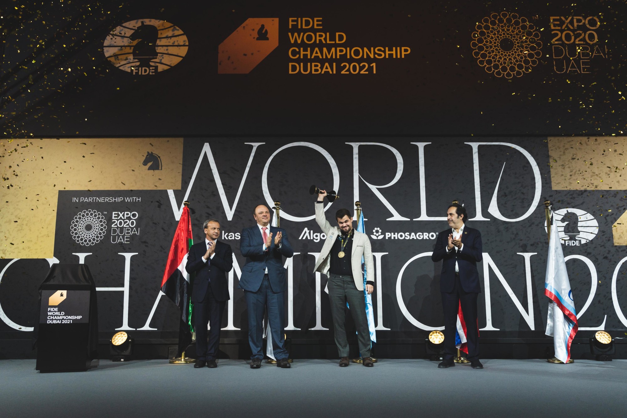 وقد حظيت مباراة اللقب العالمي في الشطرنج بمتابعة عالمية واسعة حيث أقيمت في مركز دبي للمعارض والمؤتمرات في إكسبو خلال ديسمبر الماضي واستمرت 11 جولة حيث نجح النرويجي ماغنوس كارلسن في الاحتفاظ بلقب بطولة العالم الفردية للشطرنج للمرة الخامسة على التوالي بعد التفوق على منافسه الروسي إيان نيبومنياتشي، في الجولة 11 من البطولة وقبل 3 جولات من نهاية بطولة العالم الفردية للشطرنج التي تتكون من 14 جولة، و نجح كارلسن في الحفاظ على سجله خالٍ من الهزائم، كما حقق أطول سلسلة مباريات دون خسارة في بطولة العالم بـ128 مباراة.