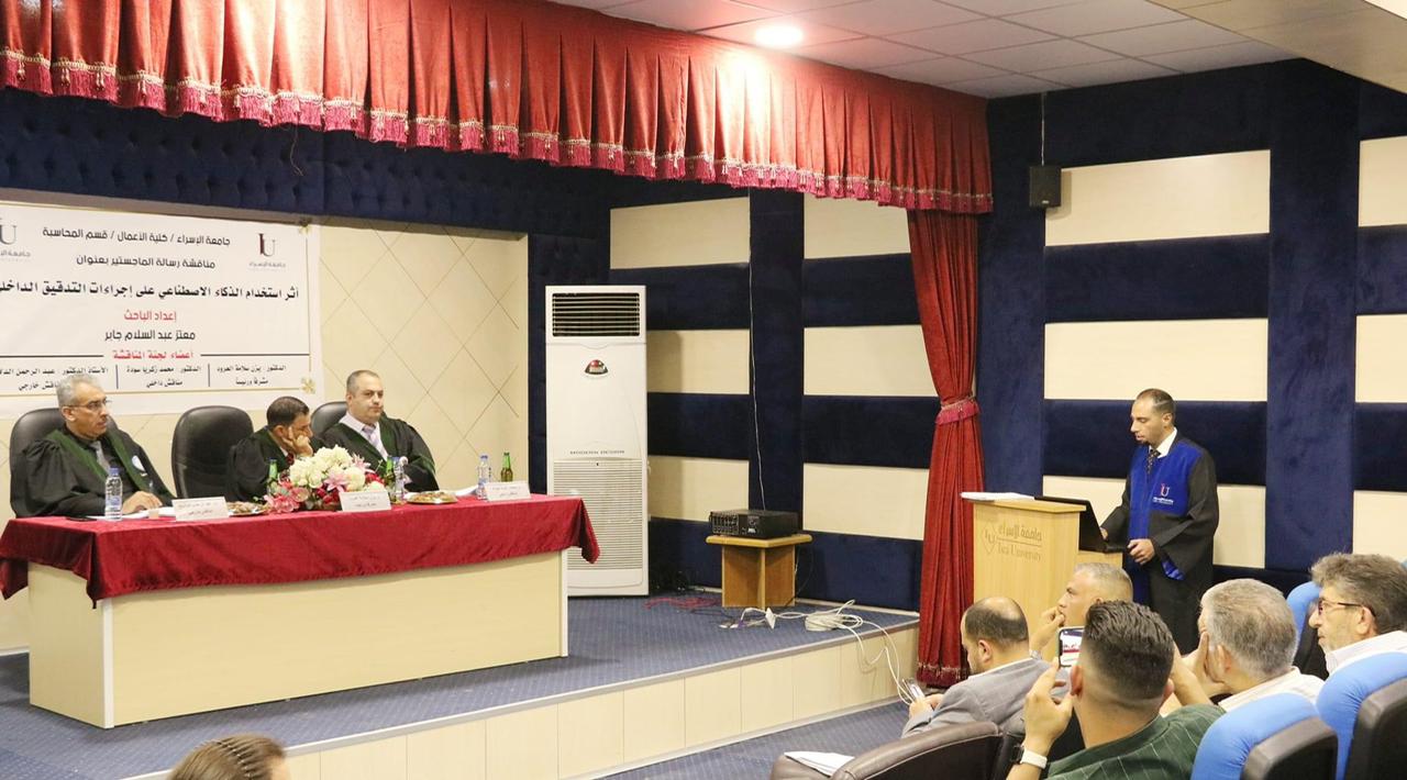 منحت جامعة الاسراء درجة الماجستير بامتياز للنشمي معتز جابر في الرسالة التي كان عنوانها أثر استخدام الذكاء الاصطناعي على إجراءات التدقيق الداخلي .