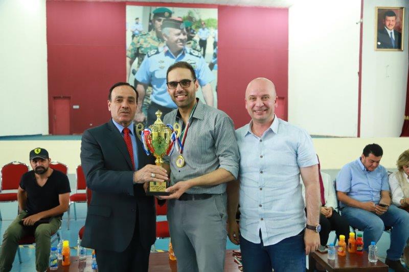 وتوج عميد شؤون الطلبة الدكتور فتحي الفاعوري الفائز وكرم المشاركين في البطولة، وفاز الدكتور محمد الناطور من كلية الصيدلة والعلوم الطبية في المباراة النهائية على منافسه الدكتور عبد الرحمن الناطور من كلية العلوم الإدارية والمالية، وقد سبق المباراة النهائية مباراة استعراضية فاز فيها الكابتن فيصل إبراهيم نجم المنتخب الوطني على الأستاذ الدكتور خالد مطالقة عميد كلية الصيدلة سابقاً.