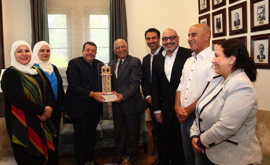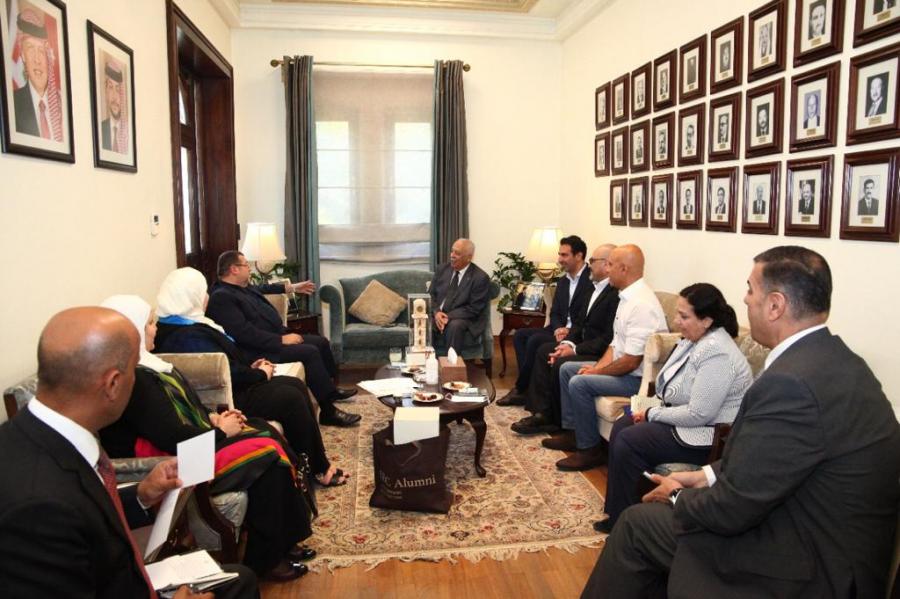 استقبل معالي رئيس الديوان الملكي الهاشمي يوسف العيسوي يوم الخميس الموافق معالي السيد أيمن حتاحت / رئيس نادي خريجي الكلية العلمي الإسلامية وأعضاء الهيئة الإدارية.