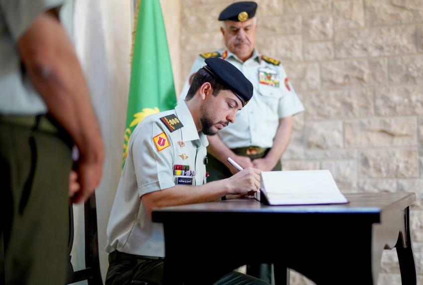 ودوّن سمو ولي العهد كلمة في سجل كبار الزوار، أعرب فيها عن اعتزازه بالمستوى الأكاديمي المتميز الذي وصلت إليه كلية الدفاع الوطني الملكية الأردنية.