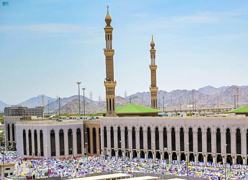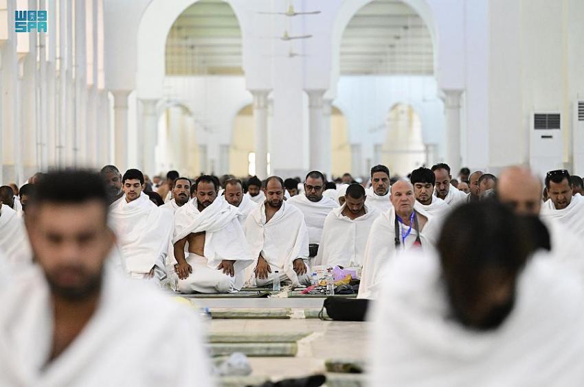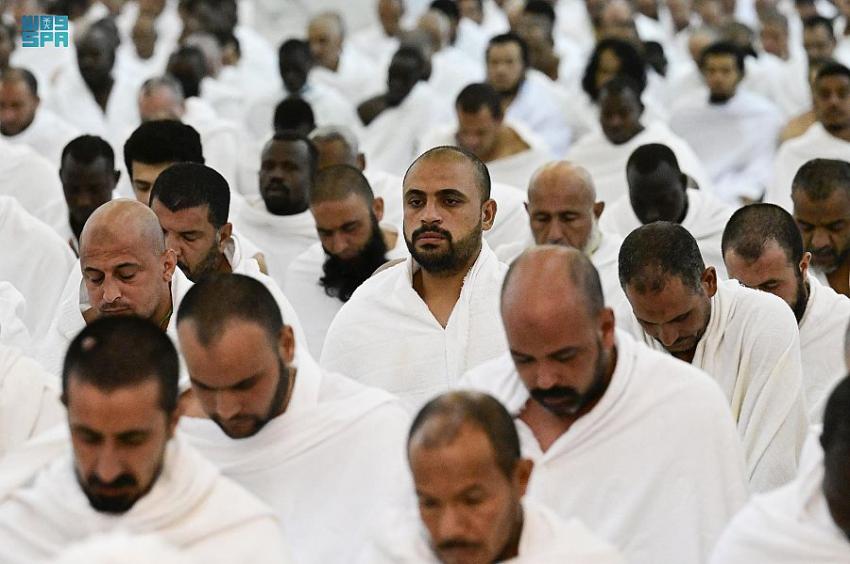 بعد ذلك أدى حجاج بيت الله الحرام الذين توافدوا منذ وقت مبكر إلى مسجد نمرة في مشعر عرفات صلاتي الظهر والعصر جمعاً وقصراً ؛ اقتداء بسنة النبي المصطفى محمد صلى الله عليه وسلم .