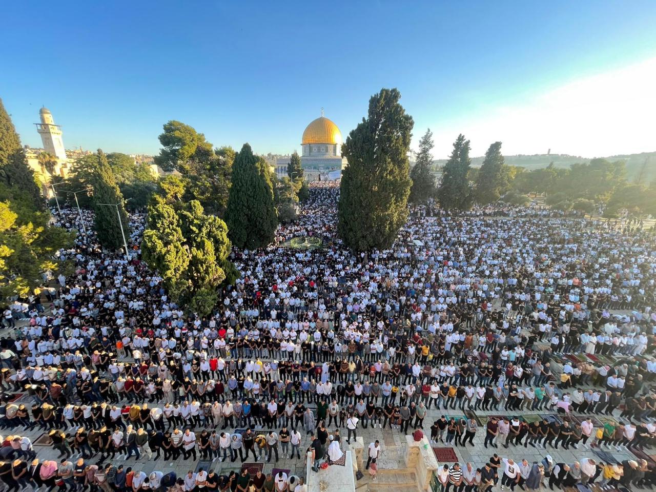 أدى 150 ألف مصل، صلاة عيد الأضحى المبارك في المسجد الأقصى، بمدينة القدس المحتلة.
