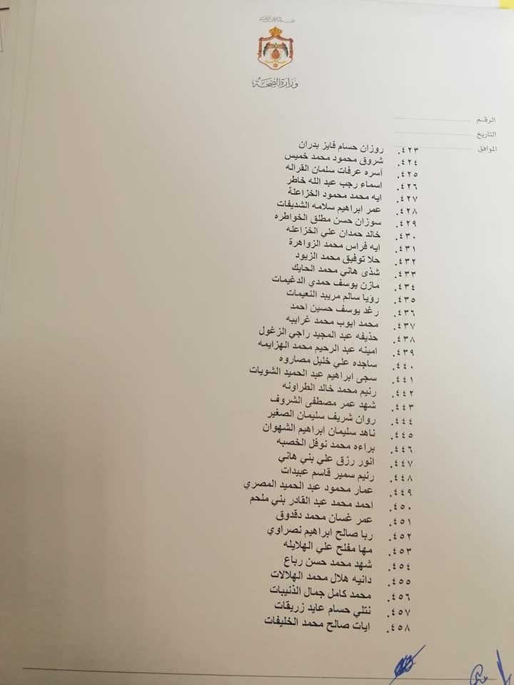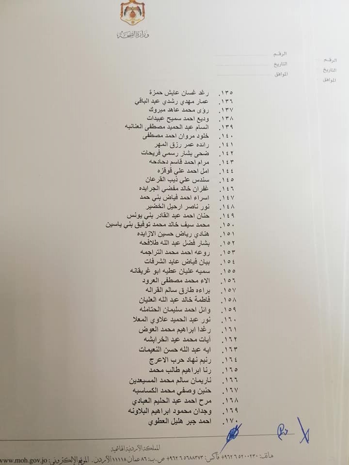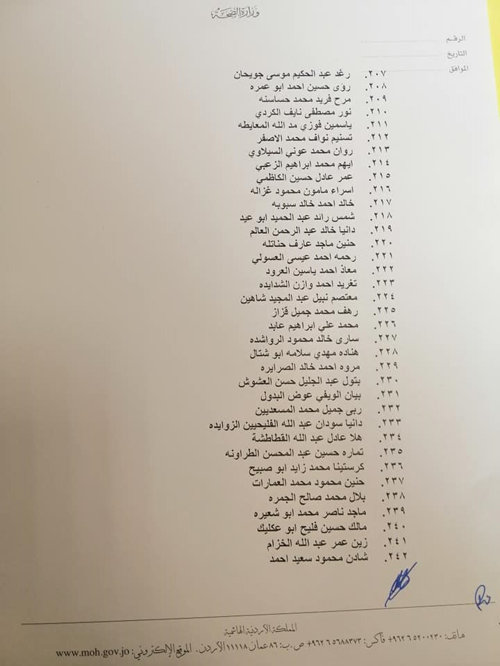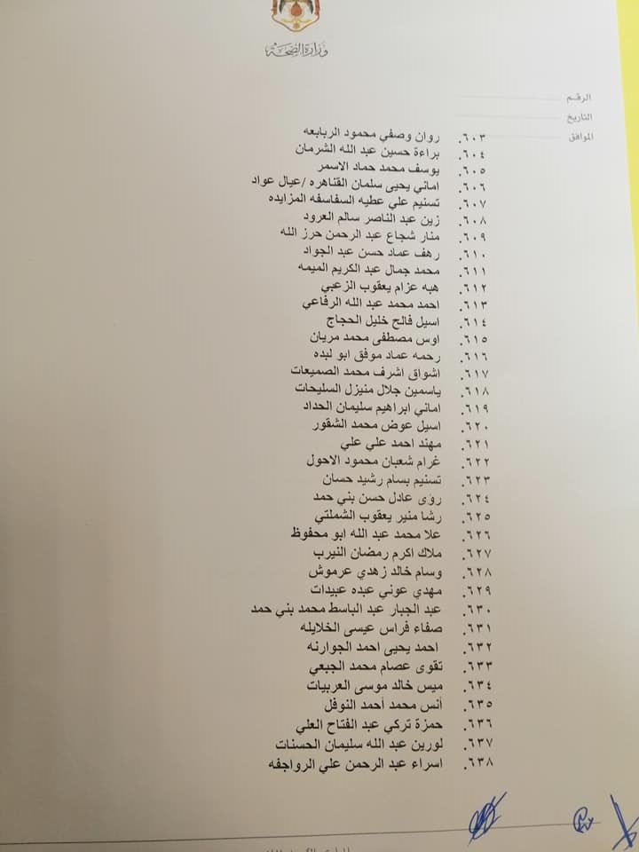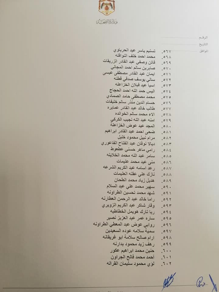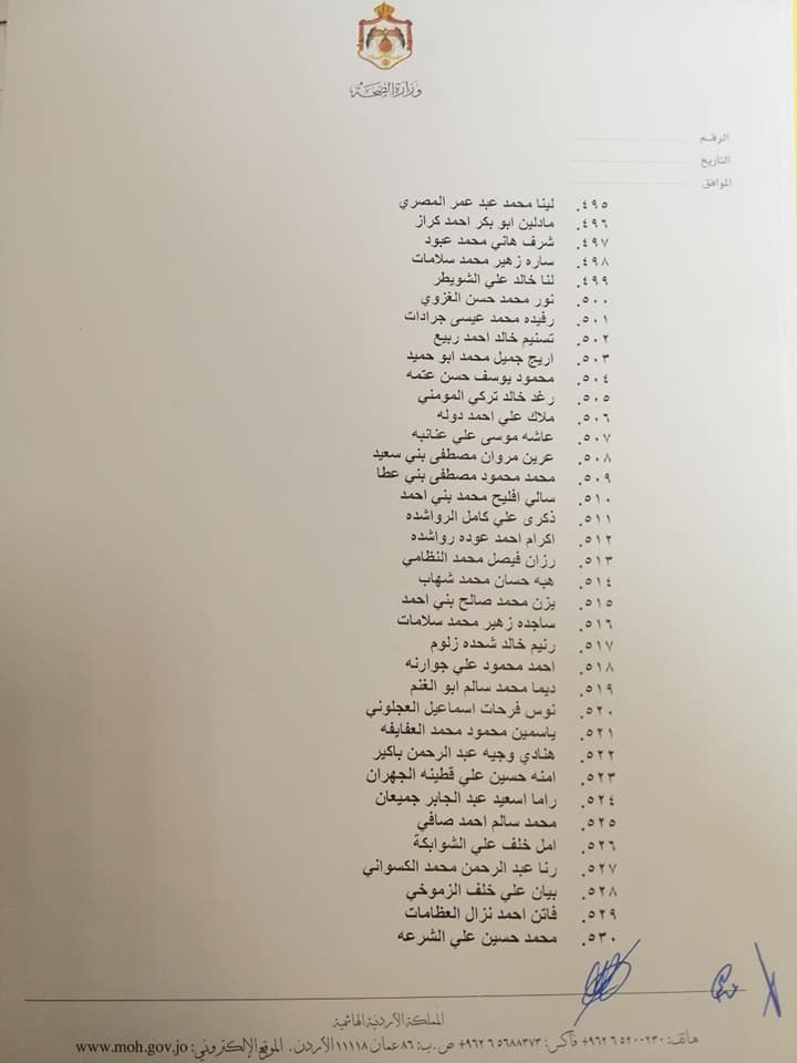 صادق وزير الصحة الدكتور فراس الهواري على نتيجة امتحان مزاولة مهنة ممرض مشارك للدورة الأولى لعام 2022.وقرر الهواري منح الناجحين ترخيص ممارسة مهنة التمريض المشارك وعددهم 663 ممرض وممرضة.وتاليا الأسماء: