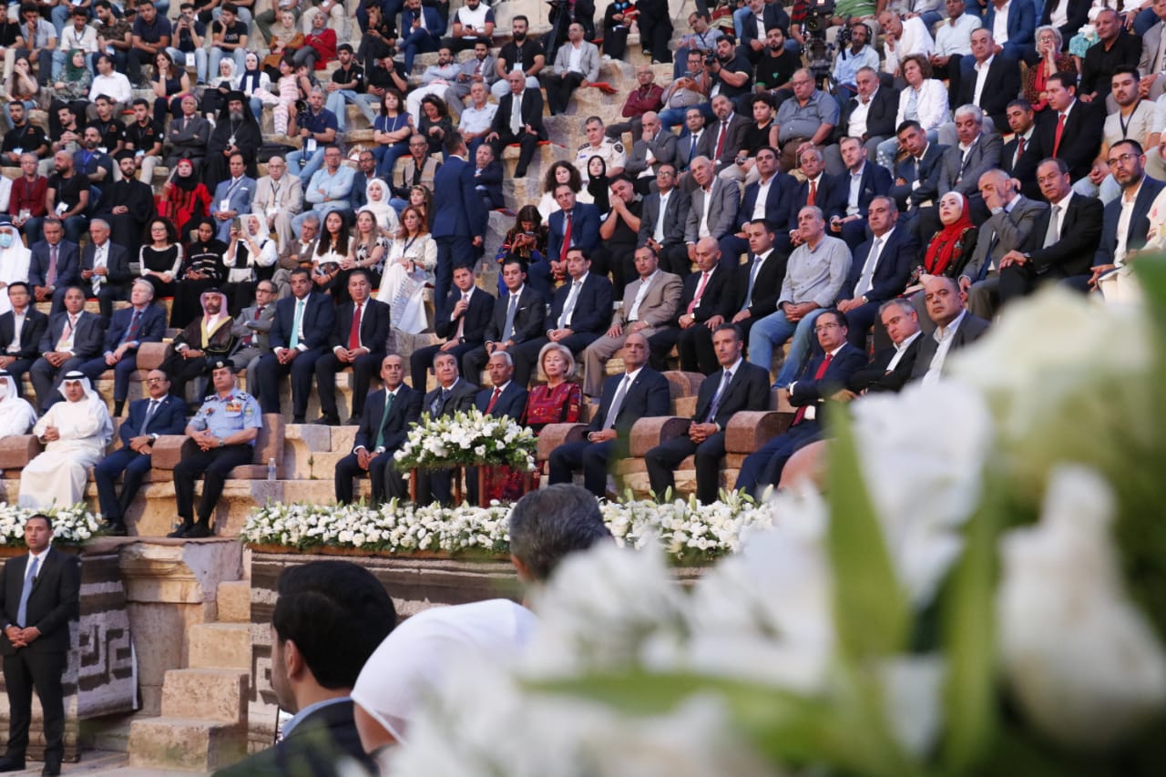 وبينت ان اليوم يتقاسم الشاعر والقاص والروائي مع الموسيقار والمطرب والممثل الشعلة التي كانت على مدار أعوامها، ومنذ أن أوقدت للمرة الأولى قيم الإبداع، يتفيئون ظلال نورها، في مساء يليق بالأردن، يليق بهاشميته، يليق بإنسانة العظيم، يليق بمبدعه الذي صنع من الحجارة الصمّاء مدنا وردية عابرة للحضارات، ولعل هذه المدارج التي نجتمع فيها أكبر الشواهد الحضارية على عراقة هذه الأرض وإنسانها.