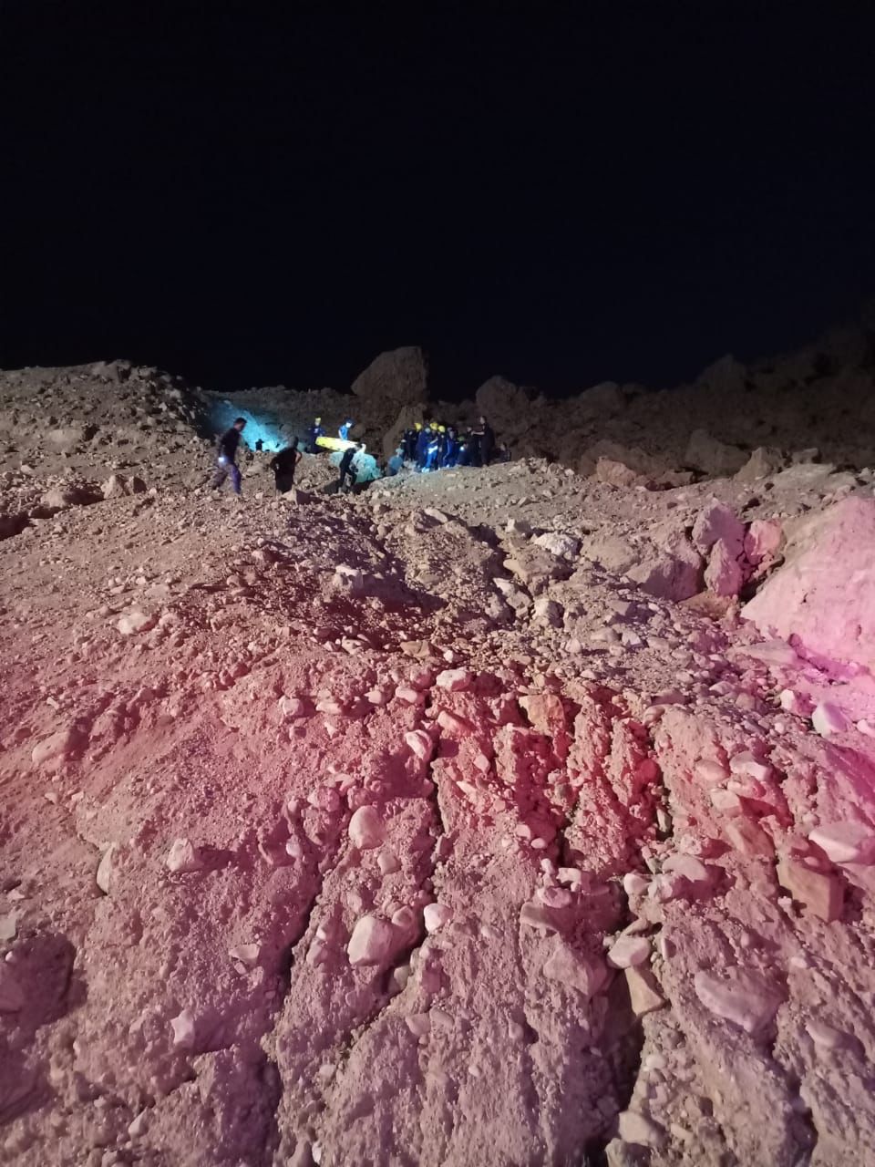 *مهنية وحرفية كبيرة خلال عملية الانقاذ على الرغم من وعورة التضاريس وبُعد الموقع عن الطريق العام بمسافة 4 كم .