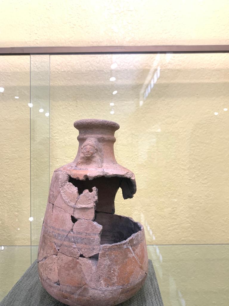 قارورة فخارية عمونية من تل المزار بالقرب من مقام الصحابي أبو عبيدة في غور الاردن، معروضة في متحف الآثار بالجامعة الاردنية.