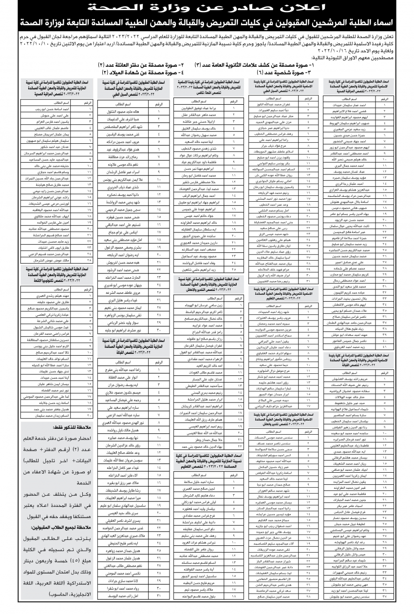 المقبولون في كليات التمريض والقبالة التابعة للصحة (أسماء)