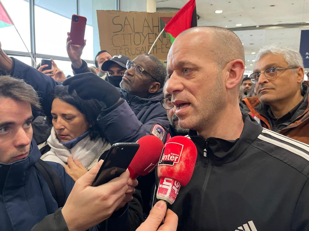 استقبل العشرات من المؤيدين للقضية الفلسطينية، بالهتافات والأعلام، اليوم الأحد، المحامي الفرنسي الفلسطيني صلاح الحموري -37 عاما-، لحظة وصوله إلى مطار رواسي في العاصمة باريس، بعد إبعاده من قبل السلطات الاسرائيلية وإلغاء إقامته في مدينة القدس الشرقية.