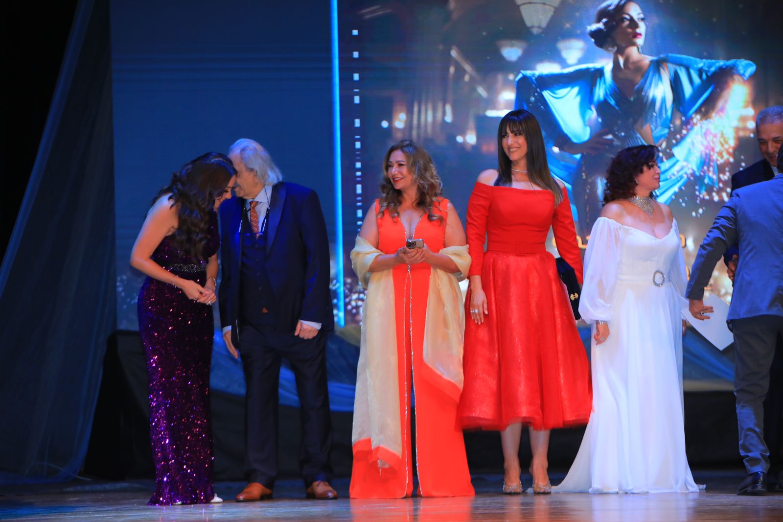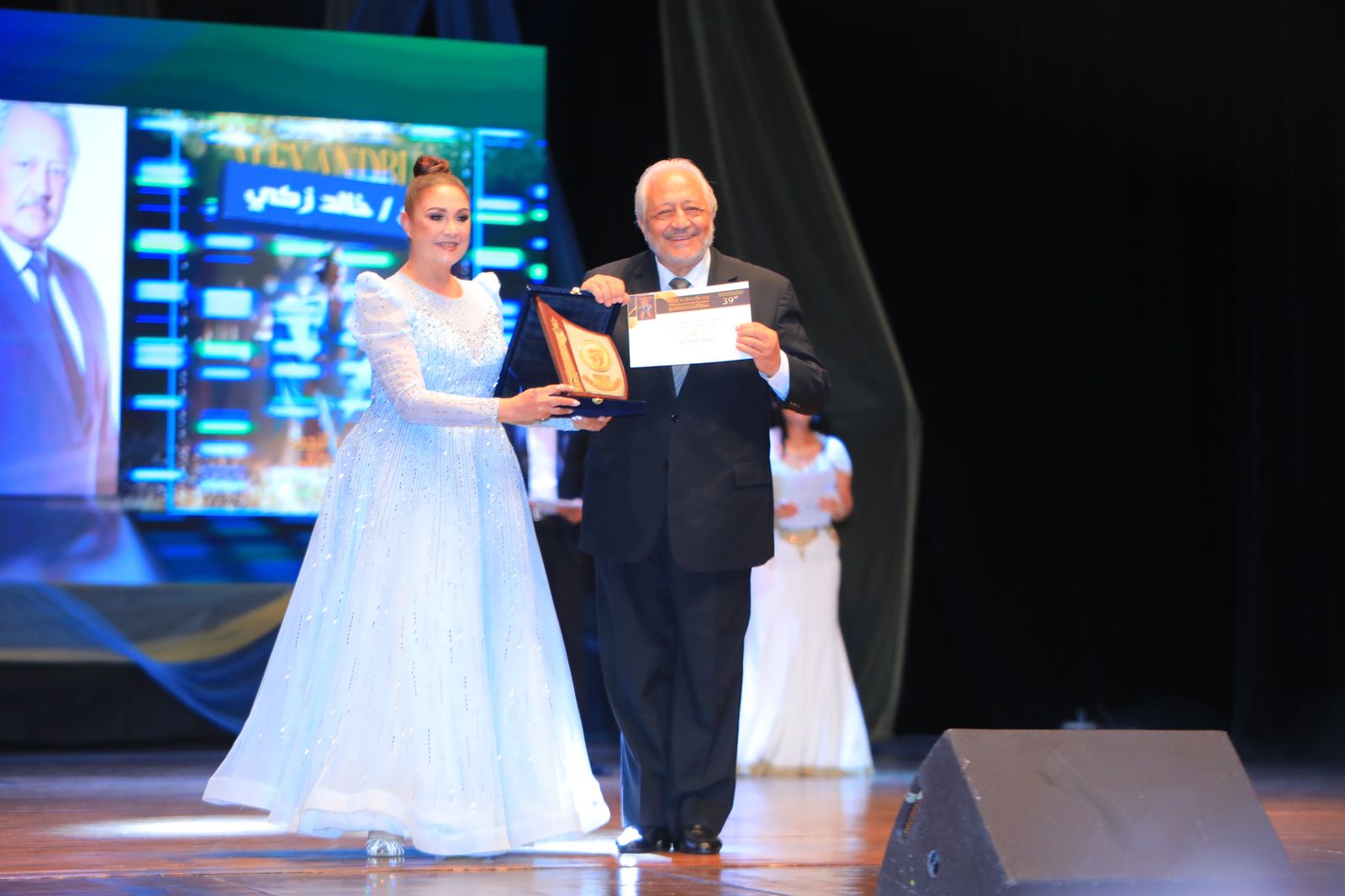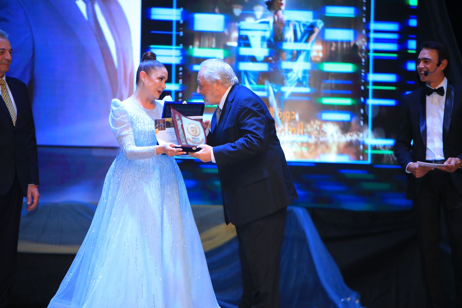 وصعد النجم الكبير محمود حميدة نجم الدورة الثامنة والثلاثين الي المسرح لتكريم نجمة الدورة ٣٩ النجمة الهام شاهين وتسليمها وشاح الدورة.