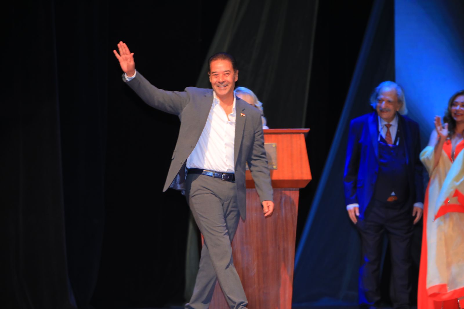 كما صعد المخرج الكبير محمد عبد العزيز إلى المسرح لتسليم تكريم المهرجان للمنتج الفرنسي الكبير