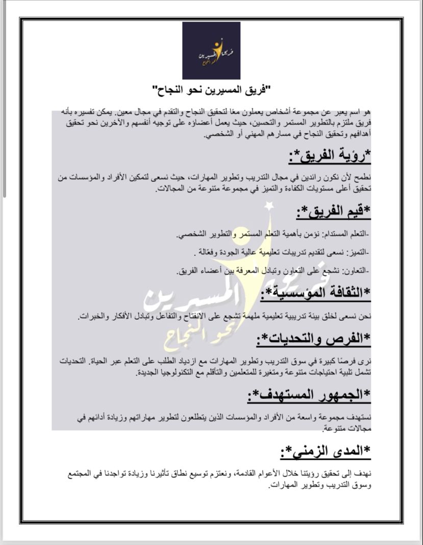 فريق الميسيرين نحو النجاح .. سبيل للتطوير والتدريب والتأهيل