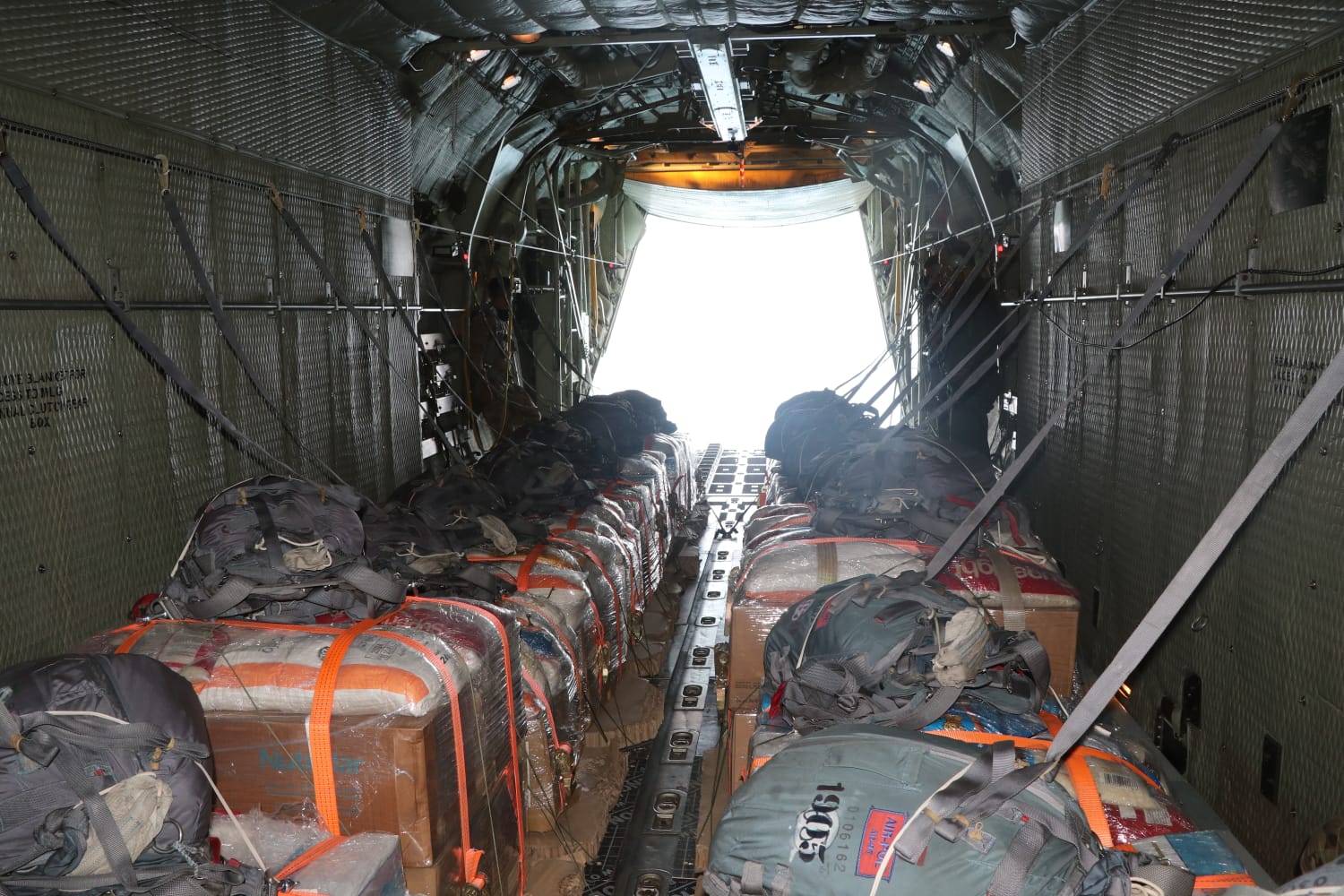 واشتملت الإنزالات الجوية على مساعدات إغاثية وإنسانية لمساندة الأهل في قطاع غزة، جراء الحرب الإسرائيلية المستمرة على القطاع.