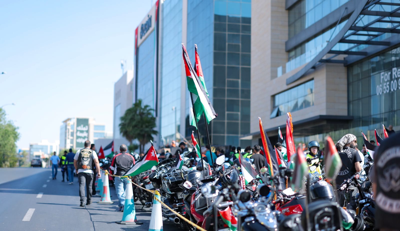 أحداث اليوم - ازدانت شوارع العاصمة عمان صباح اليوم الجمعة بالعلم الأردني، وذلك خلال انطلاق مسيرة ضخمة للدراجات النارية المزيّنة بالأعلام من مقر شركة زين الأردن في شارع الملك عبدالله الثاني، وصولاً إلى مقر هارلي في قرية الدراجين – طريق المطار؛ ضمن احتفالات زين بالعيد الثامن والسبعين لاستقلال المملكة الأردنية الهاشمية، واليوبيل الفضي لتولي جلالة الملك سلطاته الدستورية.