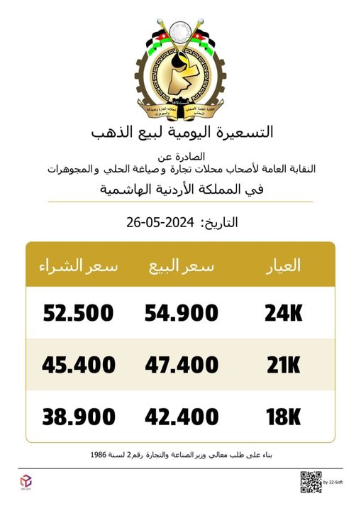 أحداث اليوم - استقرت أسعار الذهب في الأردن اليوم الأحد بحسب تسعيرة نقابة تجار الحلي والمجوهرات.