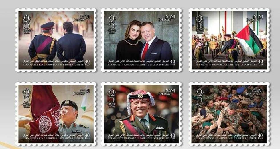 أحداث اليوم - أصدرت شركة البريد الأردني مجموعة من الطوابع بمناسبة مرور 25 عاما على تولي جلالة الملك عبدالله الثاني سلطاته الدستورية “اليوبيل الفضي”.