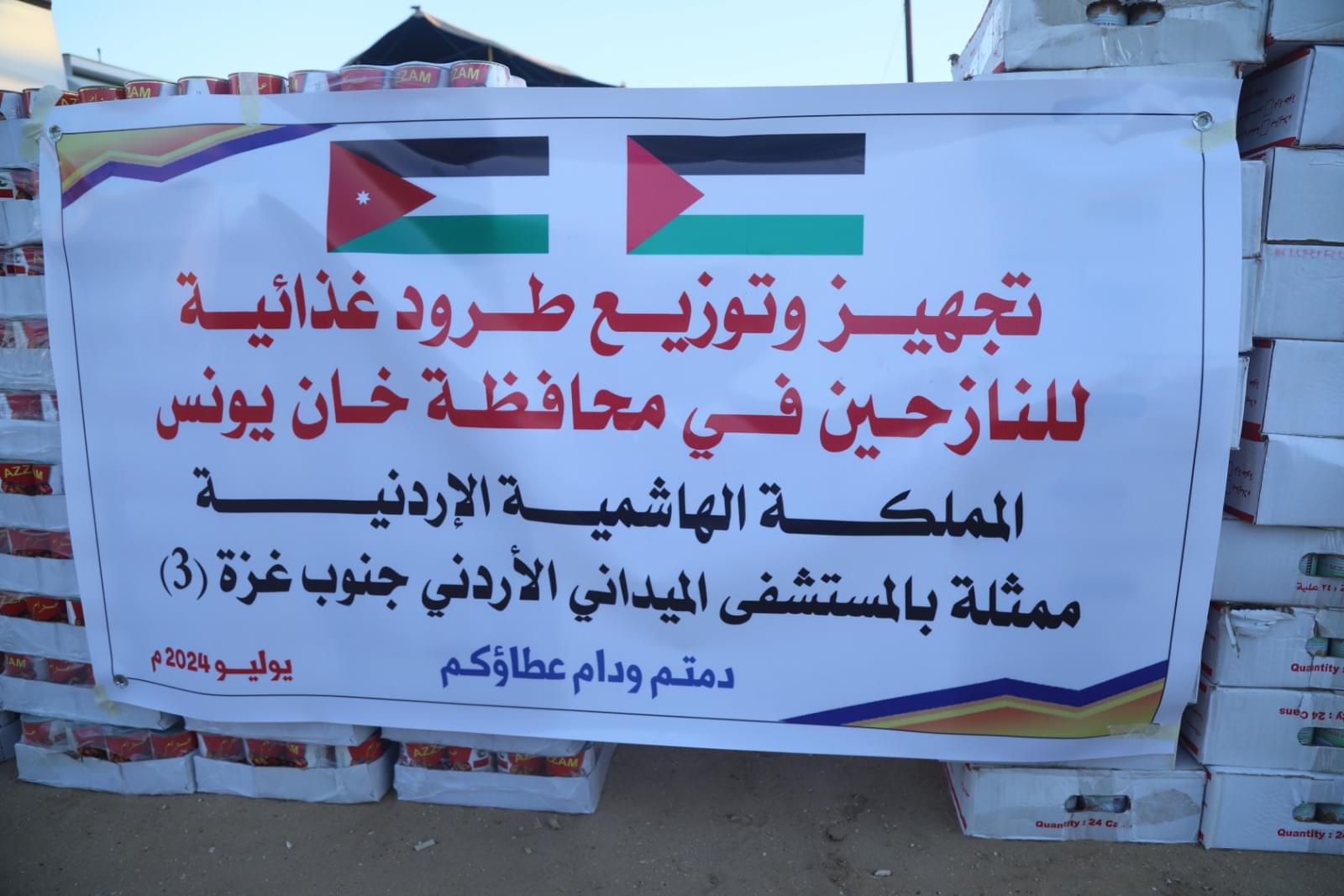 وقال قائد قوة المستشفى، إنه "استمراراً لجهود الخير الهاشمية التي تحمل معها أسمى معاني المحبة والسلام لأهلنا في القطاع، وزعت طواقم المستشفى الميداني الأردني/ جنوب غزة 3، "600 طرد خيري تضمنت مواد غذائية لتقديم يد العون والمساعدة وللتخفيف من معاناتهم"، مضيفاً أن قرابة 3000 فلسطيني سيستفيدون من الطرود التي قدمتها إدارة المستشفى الميداني الأردني في خانيونس لمدرسة تؤوي النازحين.