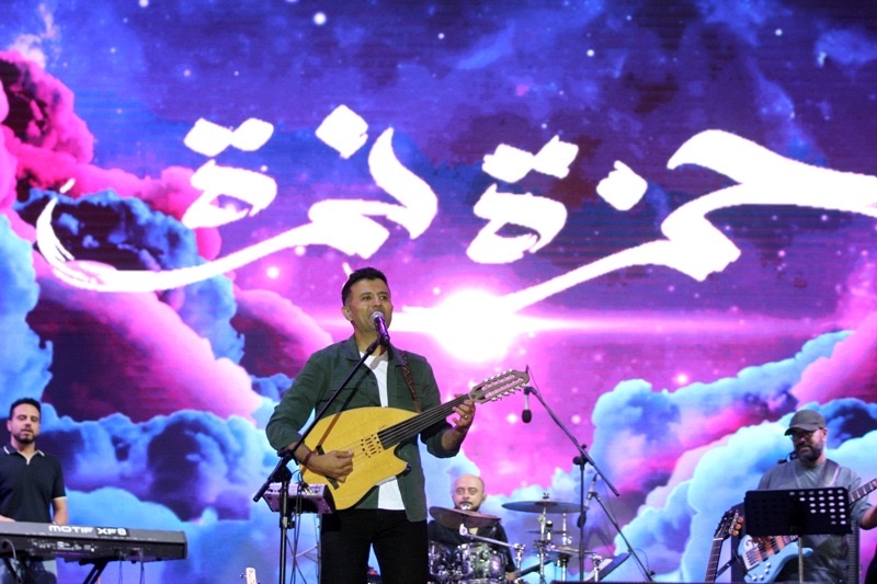 وقدم نمرة أغنيتين من الفلكور الفلسطيني تضامنا مع اهلنا في غزة وغنى "هدى يا بحر هدي" و"يا زريف الطول" التي تفاعل معها الجمهور بحماس.