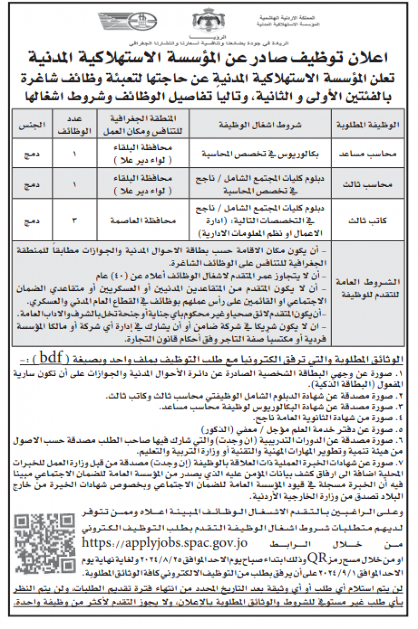وظائف شاغرة لدى المؤسسة الاستهلاكية المدنية